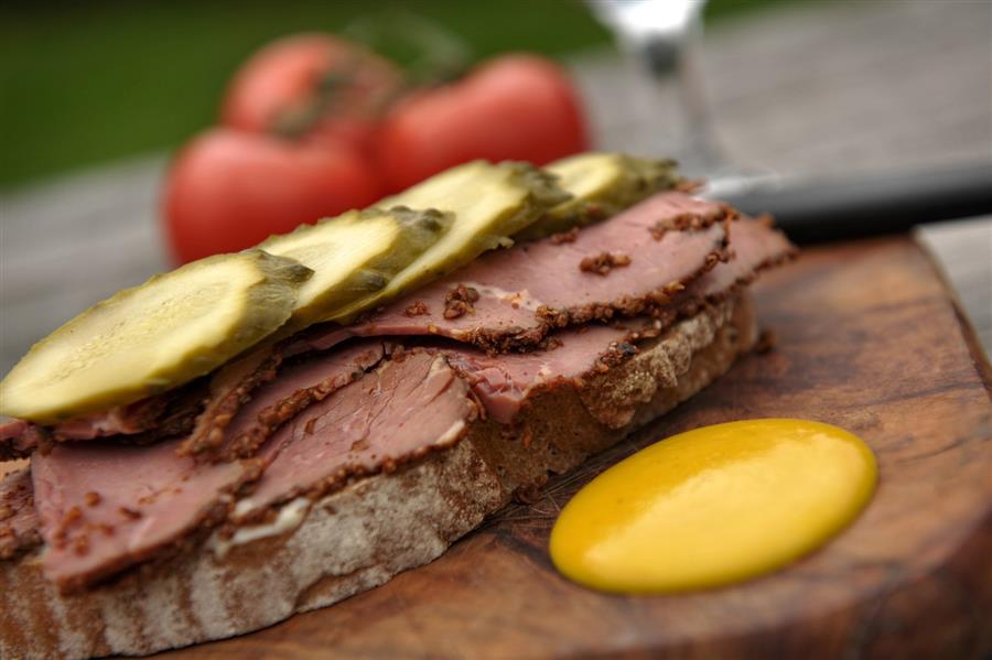 This ancient Romanian recipe has been adapted to suit modern tastes by the Americans where it has become a modern classic. Briskets of beef are brined then rubbed with spices including cracked coriander and black pepper, then slowly cold smoked in our kilns before being steamed. For the perfect deli sandwich just add Thousand Island dressing, Swiss cheese, gherkins and good rye bread.